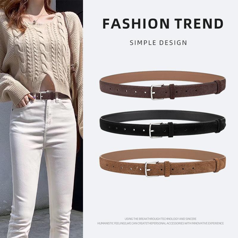 New Genuine Leather Women's Belt High-end Versatile Alloy Pin Buckle Ins Style Decorative Trousers Belt for Women