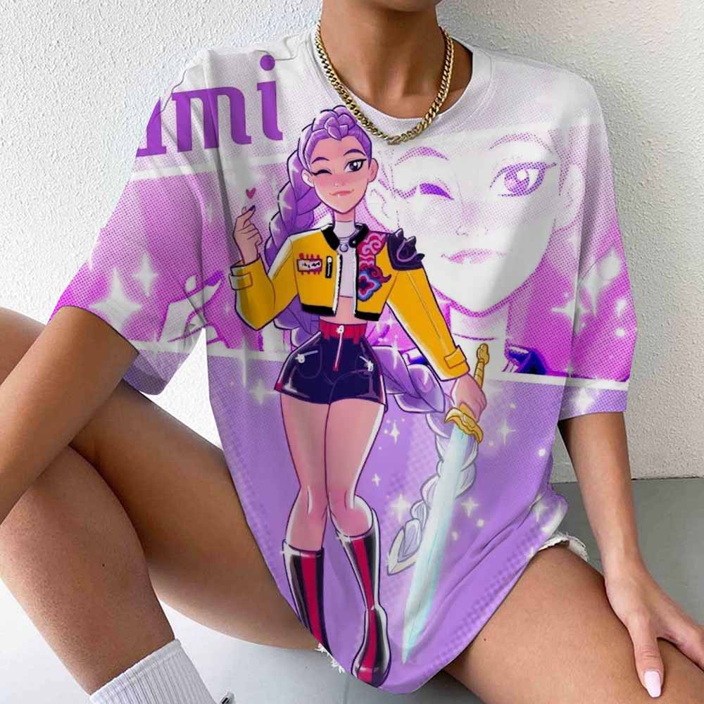Hot K-Pop Demon Hunters Mira Rumi Zoey Printing T-shirt Women Fashion Short Sleeve Street Casual Personality Summer T-shirt