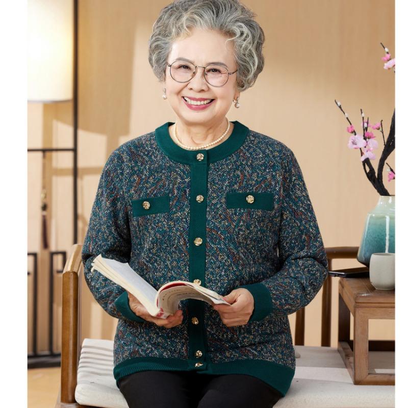 Elderly Autumn and Winter Grandma Clothes Wife Elderly Clothes Thickened Sweater Mother Knitted Cardigan Fleece Warm Jacket