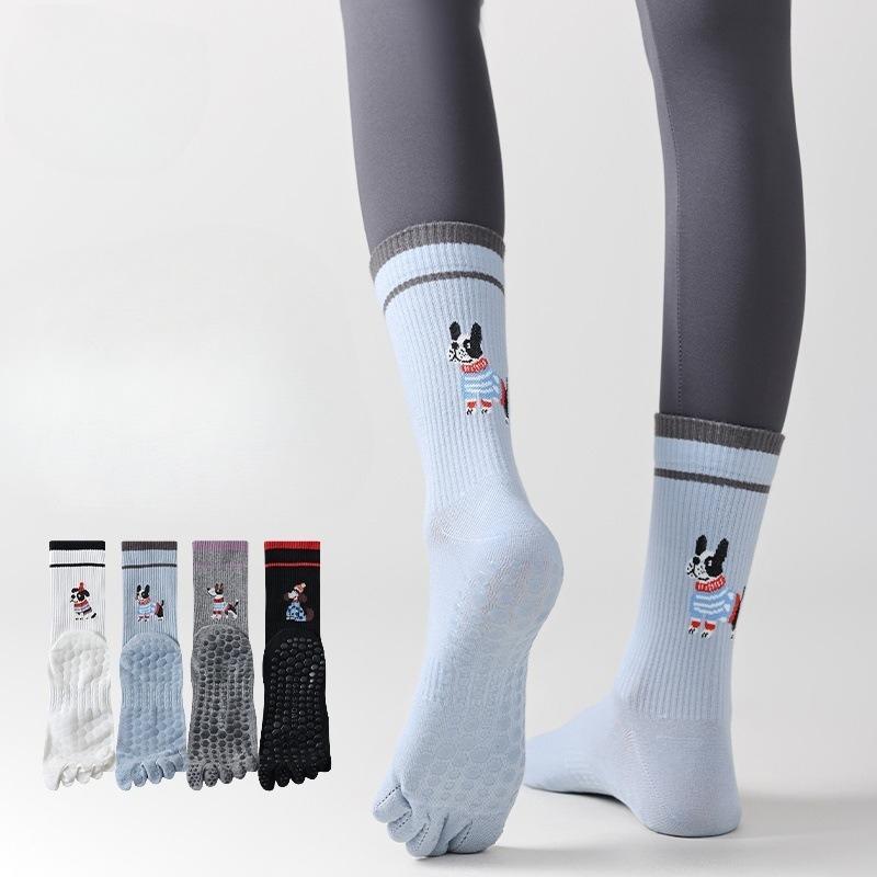 Yoga Socks, Women's Anti-slip Silicone Five-finger Socks, Fitness Exercise Pilates, Cartoon Puppy Mid-calf Socks