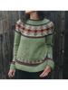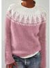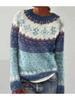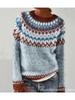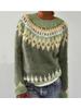 Long Sleeve Women's Round Neck Colour Blocked Loose Fit Fashionable Pullover Knit Sweater Luxurious Relaxed-fit Slimming and Versatile Top