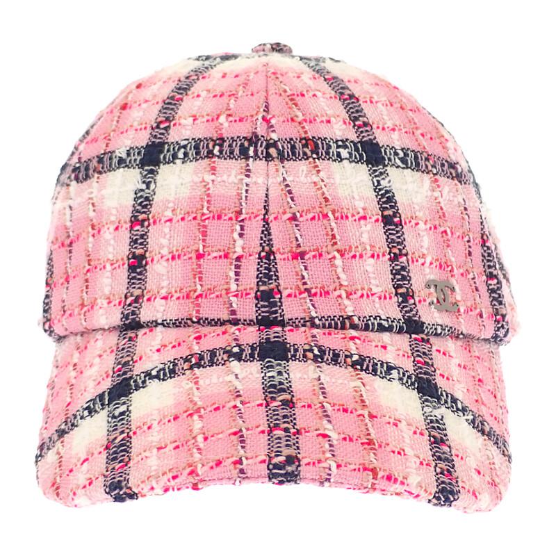Production features:This is Chanel's "COCO Mark Tweed Cap." Crafted from tweed, this feminine and gorgeous pink cap features the elegantly shining COCO Mark on the front, adding an elegant touch to casual styles. Crafted from soft cotton, it's a luxurious piece perfect for any season.