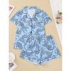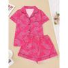 Casual Pink Leopard Print Pajama Set for Women Lapel Short-sleeved Top and Baggy Shorts Loungewear for Women