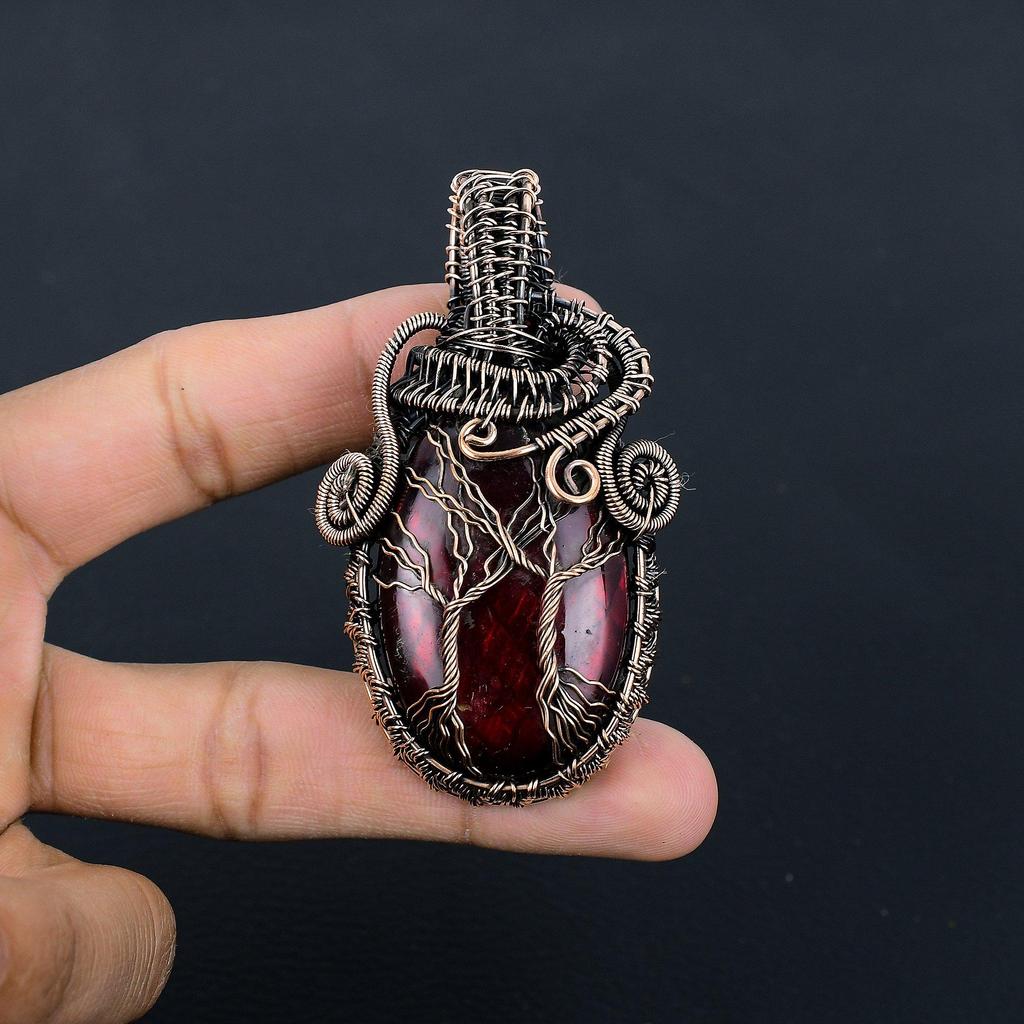 Red Flash Labradorite Pendant, 999 Copper Wire Wrapped Jewelry, Gemstone Jewelry Pendant, Handmade Wedding Gift Jewelry