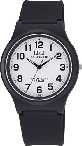 Citizen Q&Q Men's Analog Solar-Powered Waterproof Wristwatch with Urethane Strap and White Dial, Model H036-003, Black