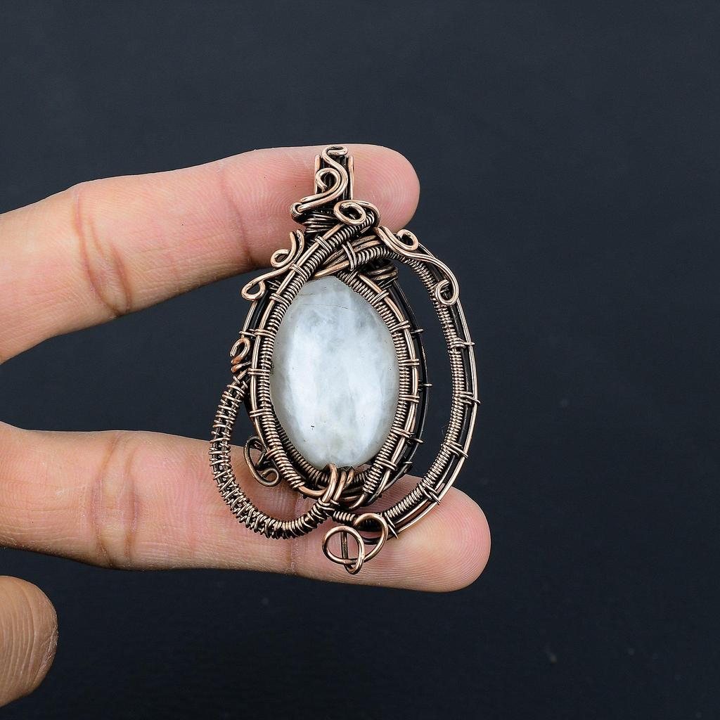 Moonstone 999 Copper Wire Wrapped Pendant, Handmade Gemstone Pendant, Gift For Mom Antique Jewelry