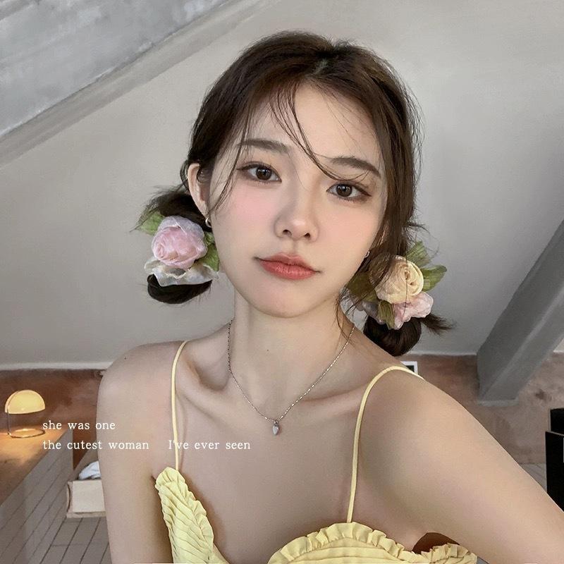 Rose Flower Organza Material Simple Sweet Lady Retro Hair Tie Large Intestine Circle Hair Accessory For Women