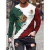 Spring and Autumn Round Neck Mexican Flag Emblem Pattern 3D Printed Top Fashionable Casual Long Sleeved Men's T-shirts