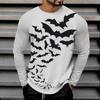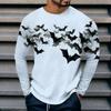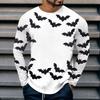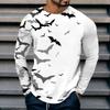 Spring and Autumn Round Neck 3D Bat Printed Top Fashionable Casual Long Sleeved Men's T-shirts