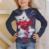 Cute Cat Pattern Children's 3D Digital Printed Girls' Fashionable and Comfortable Round Neck Long Sleeved T-shirt