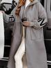 Women's White Long Hooded Coat with Black Sleeve Letter Print