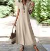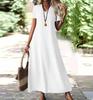 Comfortable ankle-length maxi dress featuring a V-neckline and short sleeves, designed with a relaxed loose fit for effortless summer wear.