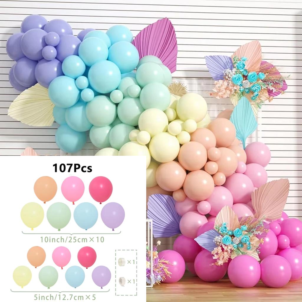 107Pcs Macaron Colored Latex Balloon Set For Wedding Birthday Party Baby Baptism - Assorted Pastel And Bright Colors