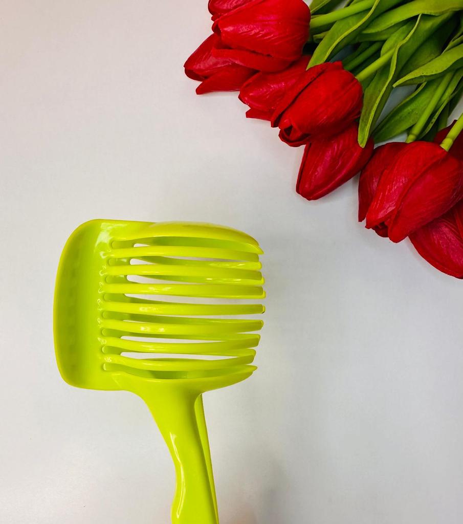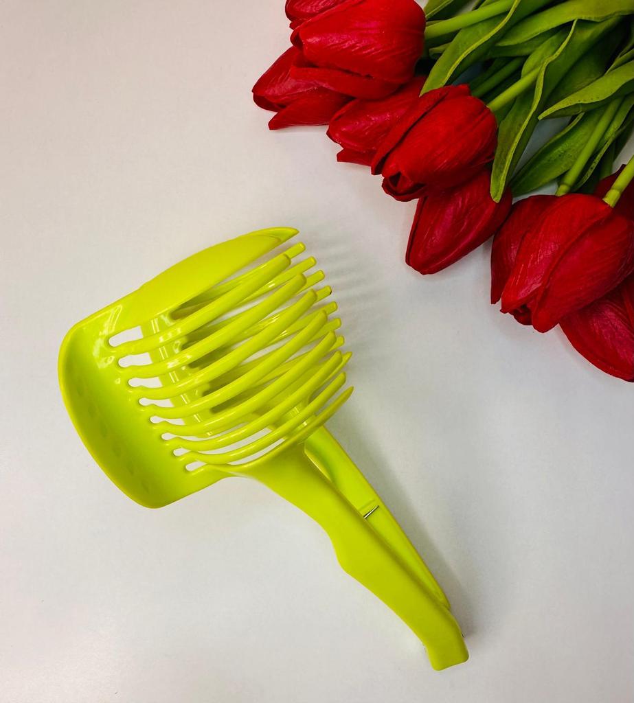 I bought this vegetable cutting holder out of curiosity – and it surprised me very positively! First of all, it is simple and convenient to use – it holds the vegetable stably and allows for precise and safe cutting, especially with round or slippery vegetables like tomato or onion.. The plastic looks high-quality and durable, and it is also very easy to clean. The green color adds a bit of life to the kitchen and it's easy to find among the dishes. I use it almost every day, and it has become a permanent tool on my work surface. I highly recommend it to anyone who wants to cut vegetables easily and safely. A simple and efficient solution.