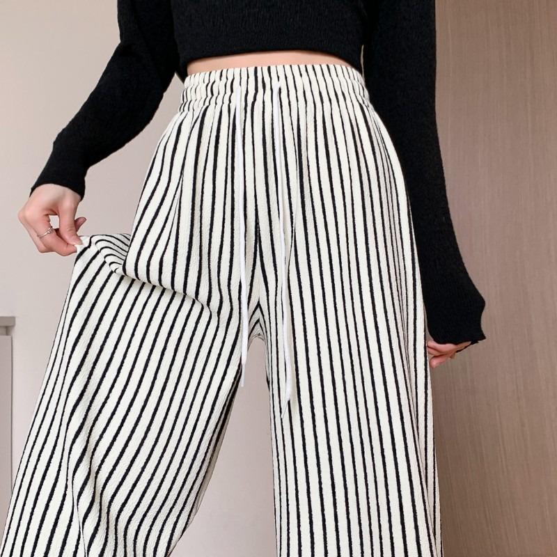 Towel Black and White Striped Soft Waxy Lazy Knitted Wide-leg Pants Women's Spring and Autumn High Waist Drooping Casual Mopping and Walking Trousers