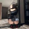 Sexy Underwear Uniform Seduction Student Plaid Miniskirt Low Neckline Sweater Set Pleated Skirt