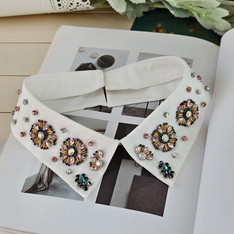 Retro Rhinestone False Collar Neckline Women Lapel Fake Collar Woman Embroidery Removable Detachable Tie Clothing Accessories