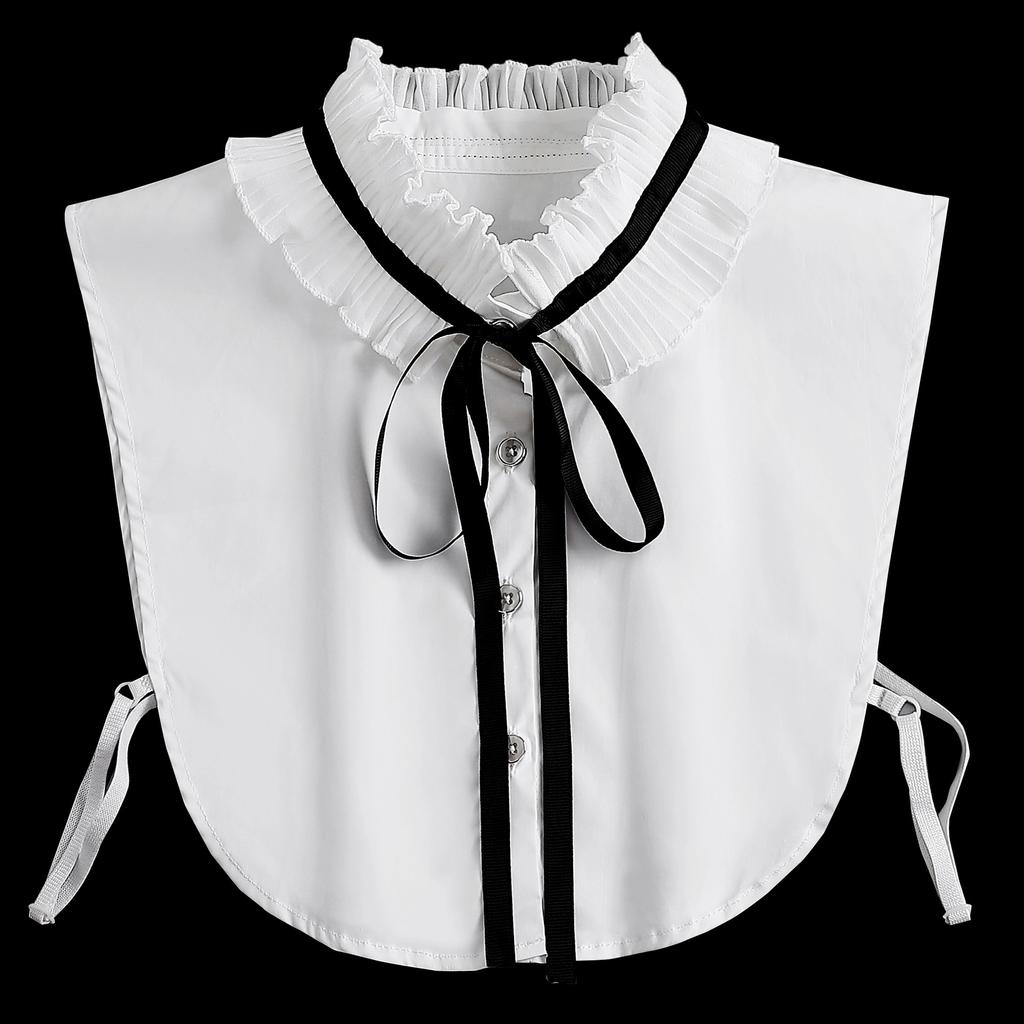 Women Lace Pleated Stand-up Collar Bow Tie Shirt Fake False Collar Accessory Ladies Neckwear Half Shirt Detachable Collar