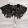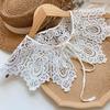 Korean Women White Cotton Fake Collar Shawl Wrap Hollow Out Floral Fish Scales Necklace Scarf Embroidery Short Poncho