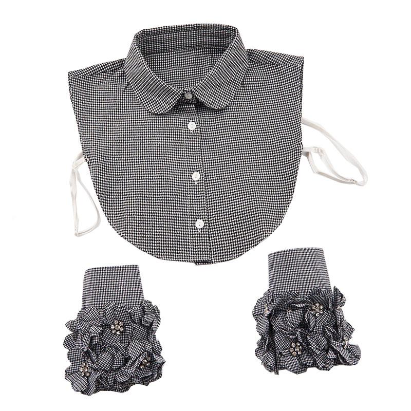 Plaid Fake Collar Fake Sleeve Cuff White Lace Detachable Shirt False Collar for Women Blouse Sweater Lapel Clothing Accessories