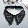 Pearl Fake Collar Shirt Women Detachable Collar Neckline Women False Collar Tie White Lapel Faux Col Women Clothes Accessories