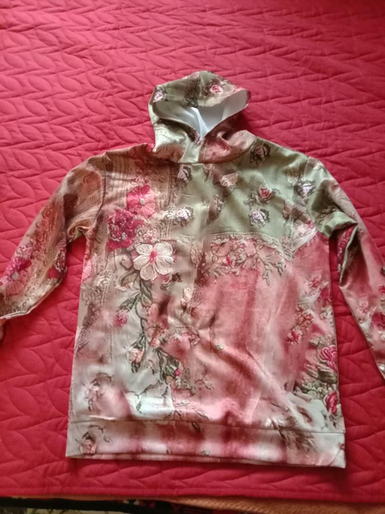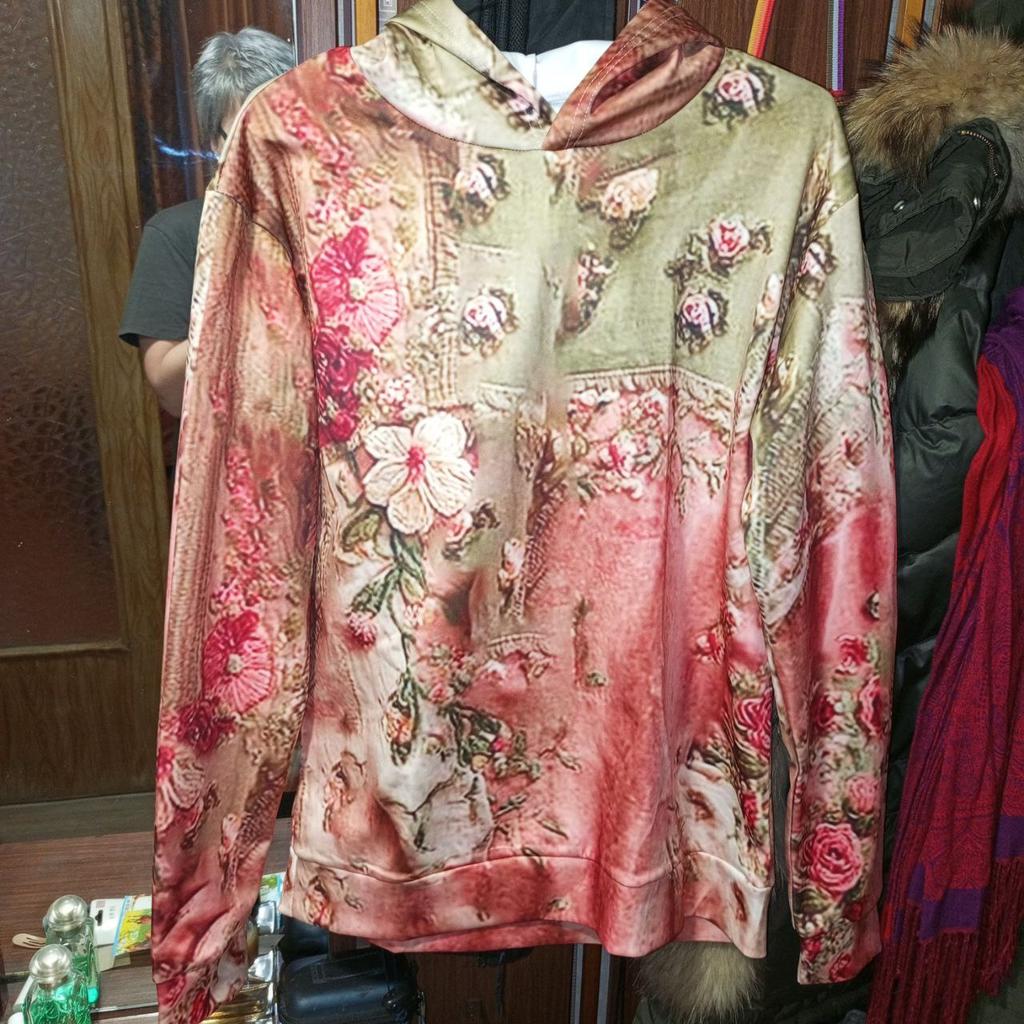 Women's Fashion Long-Sleeve Hooded Vintage Patchwork Floral Print Casual Sweatshirt Top