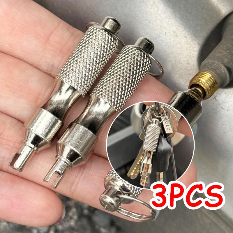 1/3PCS Universal Tire Repair Screwdriver Stainless Steel Antirust Tire Valve Wrench with Key Ring Tire Repair Tools for Car Motorcycle