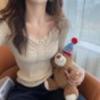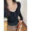 V-neck Lace Knitted Base Layer for Women, Paired with A Slimming Autumn New High-end Sweater Short Top