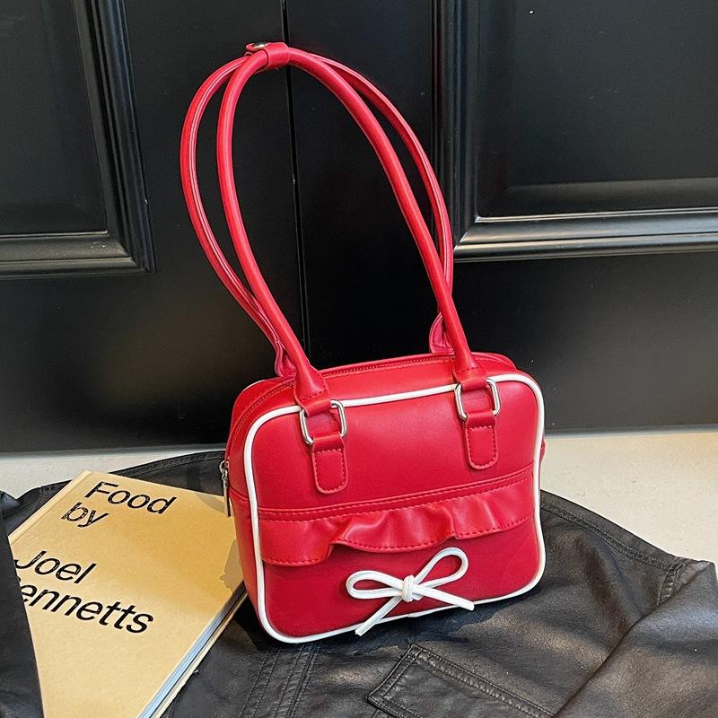 - **Structured Multi-Way Bag Details**: Features a sleek structured mini tote silhouette with PU material, ruffled accents, and cute bow detail, along with versatile carrying options (handheld, single-shoulder), exuding cute and girly charm. Multiple color options cater to diverse style preferences.