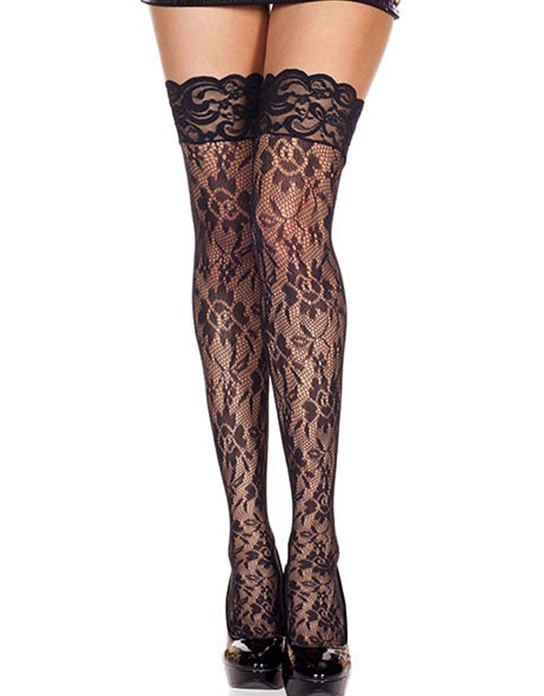 Black Stockings Floral Fishnet Lace Garters Mh4545 Blk