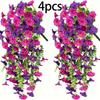 Outdoor Artificial Flowers, Realistic UV-Resistant Hanging Flowers, Trumpet Vine, Purple and Purple Red, for Porch, Patio