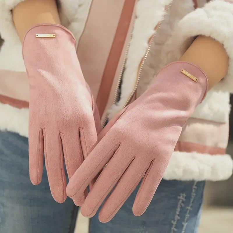 Women Touch Screen Gloves Fashion Mittens Autumn Winter Warm Thin Cashmere Solid Cycling Drive Suede Fabric Elegant Windproof