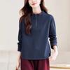 Autumn Winter Solid Color Stand Collar Zipper T-shirt Women Long Sleeve Casual Fashion Vintage Pullover Top Tee