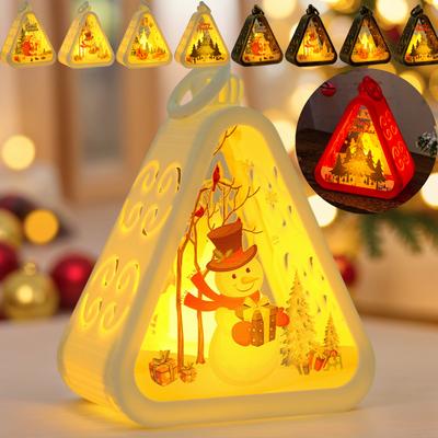 Christmas Candle Holder Wind Lamp Table Lamp Snowman Santa Claus Elk Decorative Light Battery Powered For Xmas New Year