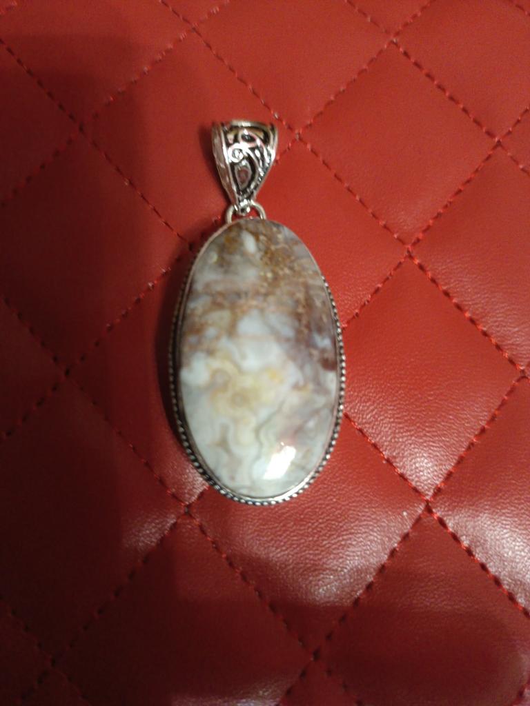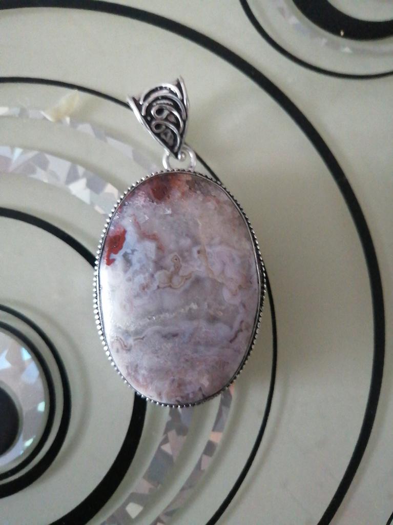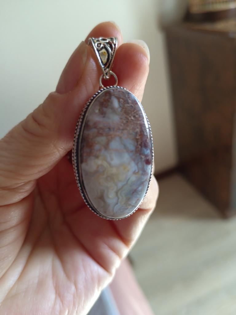 Beautiful silver pendant with lace agate. Silver hallmark is present. High-quality craftsmanship. Pendant size without bail 3.7 cm × 2.2 cm.