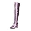 Metallic Gold Silver Thigh High Long Boots Women's Patent Leather Over the Knee High Boots Chunky Heels Shoes