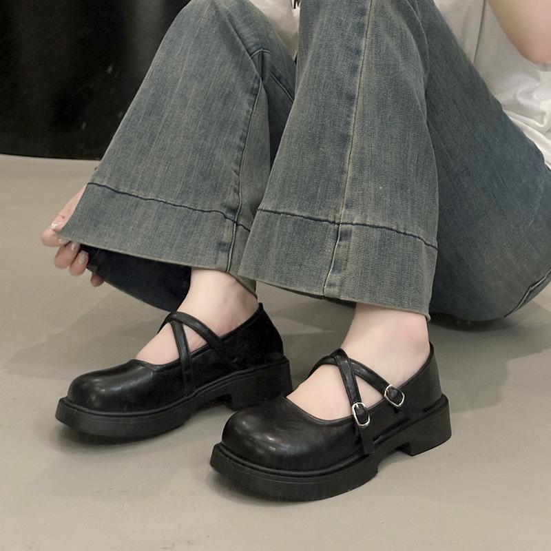 White British Style Small Leather Shoes for Women 2025 Spring and Autumn New Retro Versatile Thick Heel Light Mouth Mary Jane Single Shoes for Women