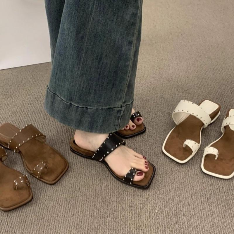 Beautiful Set of Toe Rivets with Small Slope Heels Slippers Women's Summer Wear Seaside Vacation Casual Beach Sandals