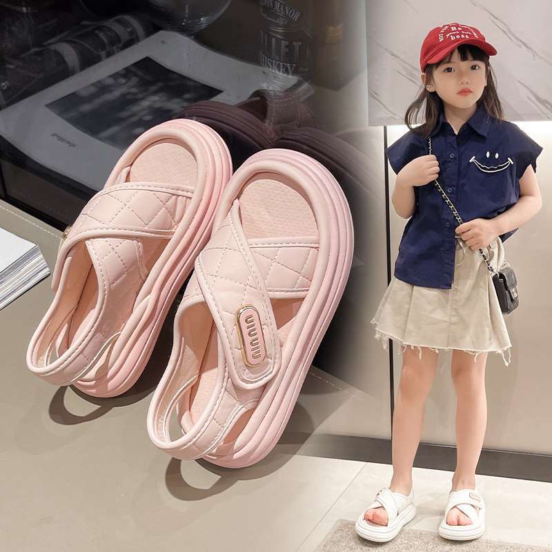 Girls Sandals Medium and Older Children 2025 Popular Summer Fashion Small Fragrant Style Girls Soft Sole Children's Casual Princess Shoes