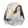 Pullovers Long Sleeves Sweaters Unisex Sweater Spring Autumn Floral Pattern Texture Round Neck Colorblocking Knitted Bottoming Retro Wool Sweater