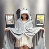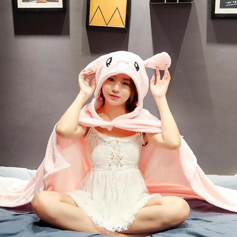 Cartoon Cute Cape Blanket Flannel Lazy Shawl Cape Student Hooded Home Office Nap Blanket Winter Bed Blanket Coral Velvet Warm