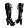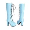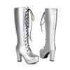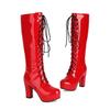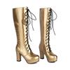 Shiny Gold Red Patent Leather Knee High Boots Women Thick Heels Dress Party Sexy Lady Lace-up Zipper Platform Long Riding Boots