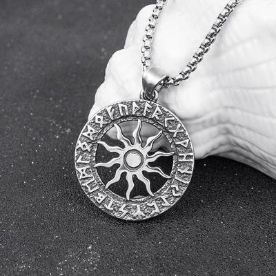 Retro Nordic Viking Rune Sunflower Pendant Titanium Steel Men Fashion Necklace