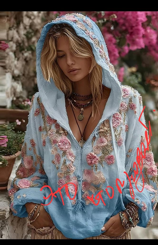 Women's Fashion Long-Sleeve Hooded Vintage Floral Print Casual Sweatshirt Top