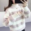 Turtleneck Striped Sweater Women's Autumn and Winter New Loose Outer Wear Casual Imitation Mink Velvet Knitted Sweater Tide