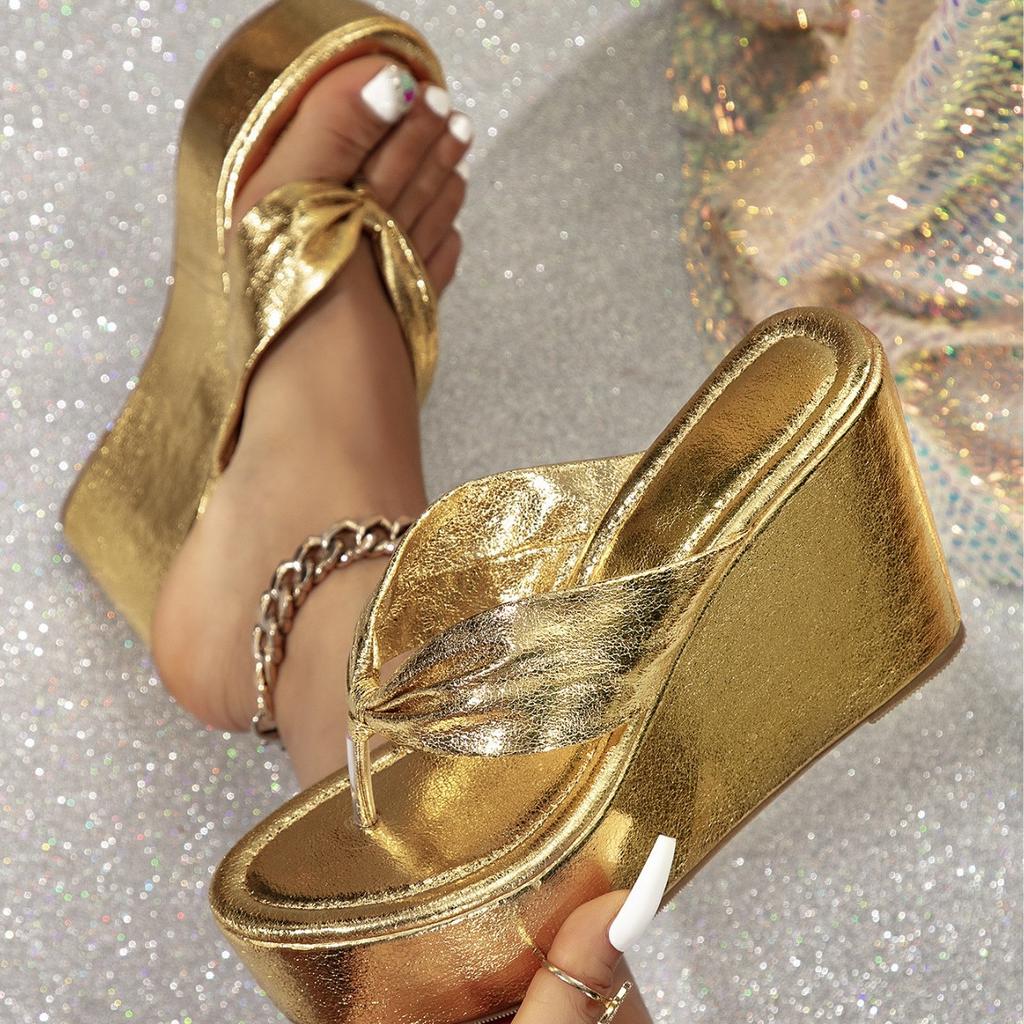 Women's Shoes Golden Flip-flops Platform Sandals European and American Style Fashion Casual Simple Temperament 2025