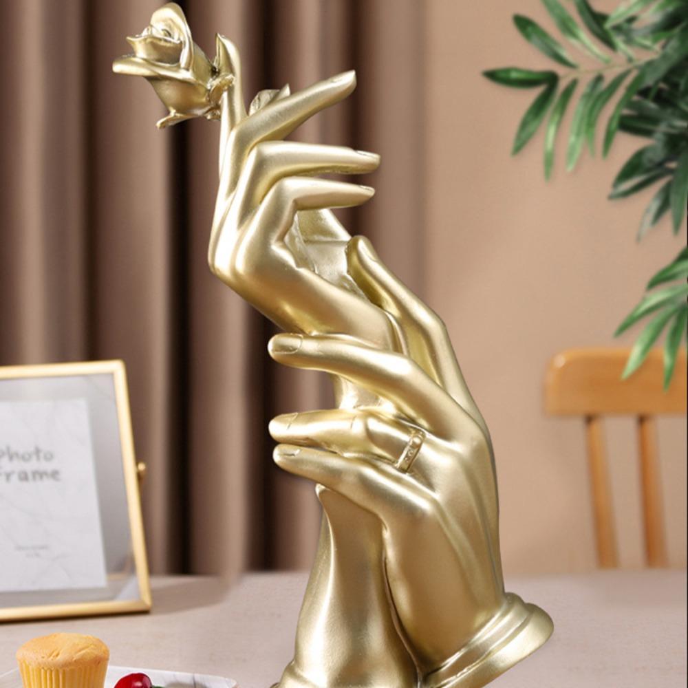 Hand Statues Nordics Hand Holding Rose Figurine Resin Craft Home Decor Abstract Hand Sculpture Creative Modern Living Room Decor