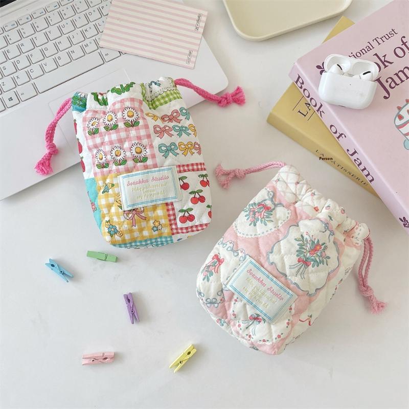 Ins Style Floral Storage Bag Drawstring Drawstring Pocket Soft Cotton Anti Fall Cosmetic Bag Sundry Storage Camera Bag