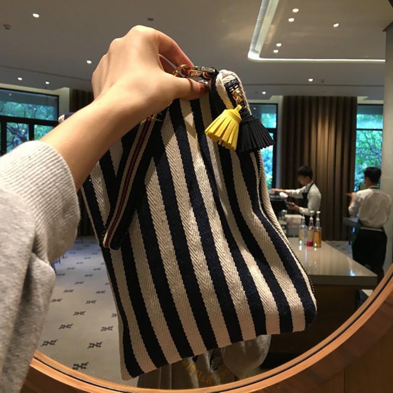Cosmetic Bag Women Striped Makeup Case Organizer Korean Tassel Cosmetic Pouch Necesserie Travel Toiletry Bag Canvas Beauty Case