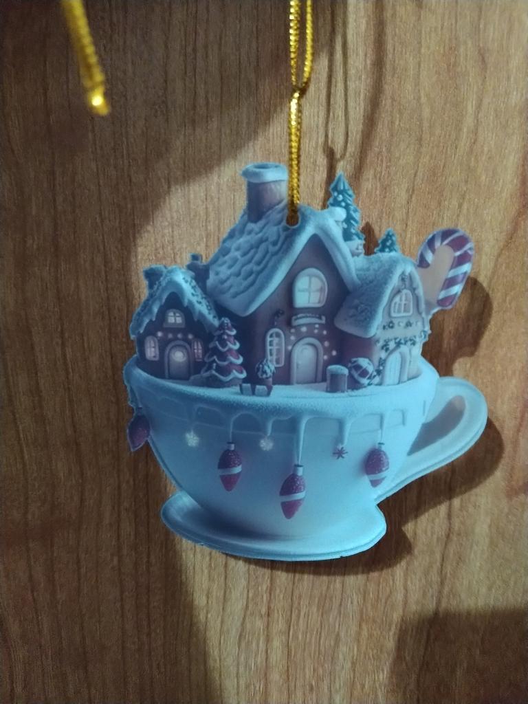 2 Pcs Coffee Cup Christmas Tree Ornaments 2D Acrylic Winter Village Snow House Hot Chocolate Mug Shape Xmas Hanging Pendents for Holiday Decor
